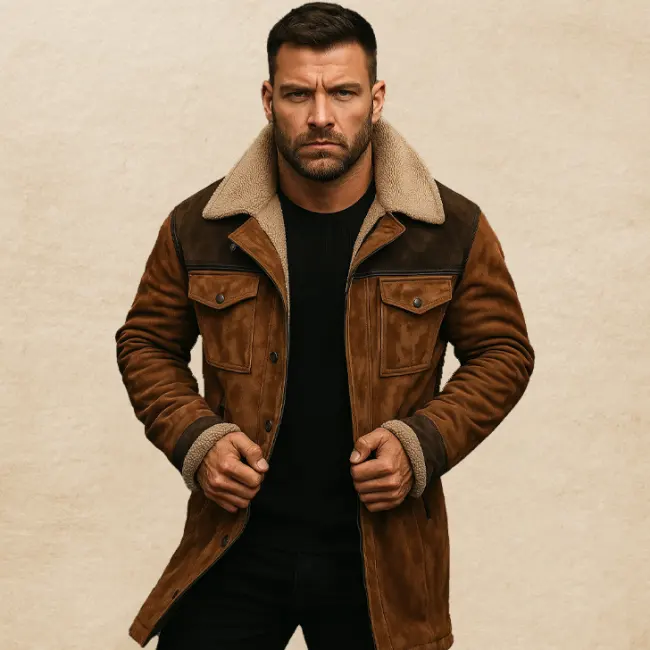Men's Vintage Brown Suede Leather Sherpa Lining Jacket