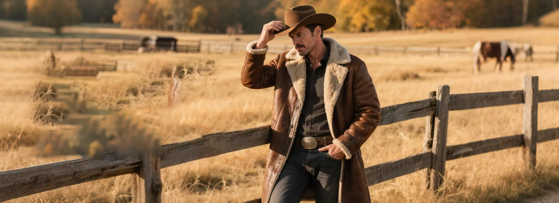 Men's Vintage Brown Suede Leather Coat With Faux Fur Lining