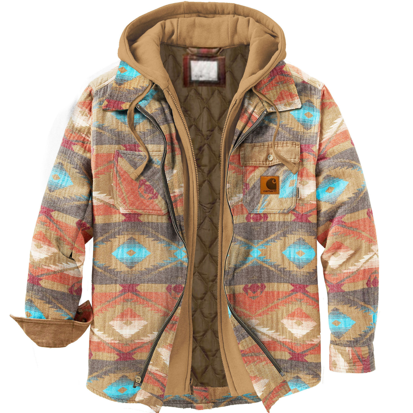 Men's Outdoor Casual Autumn And Winter Logo Classic Plaid Hooded Jacket